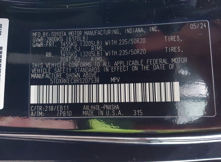 - VIN: 5TDXRKEC8RS207538