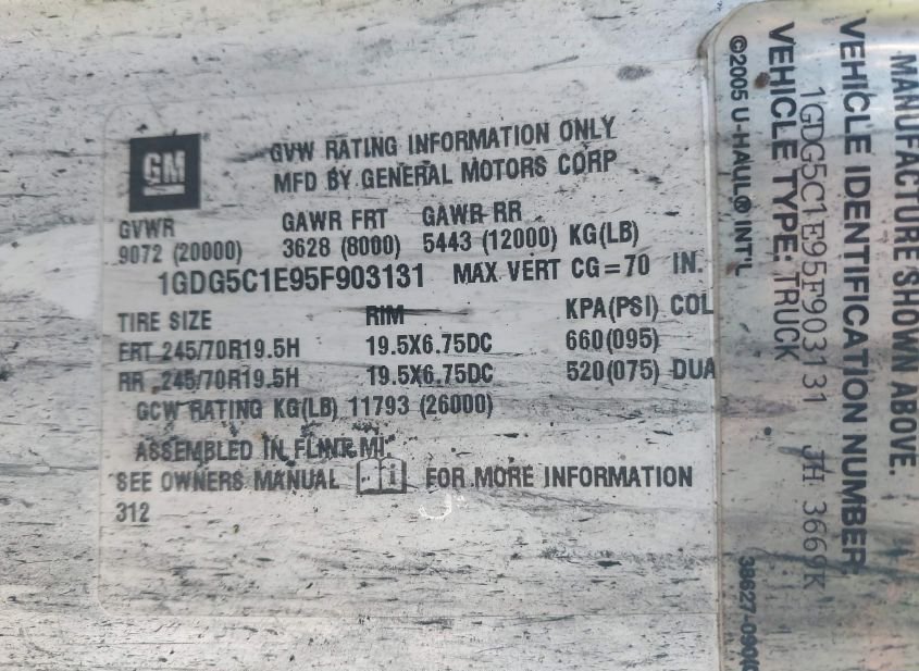 - VIN: 1GDG5C1E95F903131