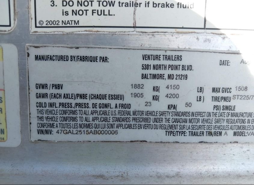 - VIN: 47GAL2515AB000006