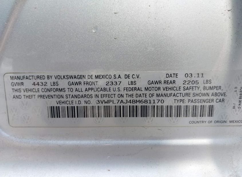 - VIN: 3VWPL7AJ4BM681170