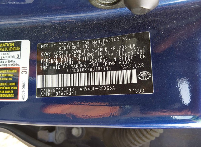 - VIN: 4T1BB46K79U104411