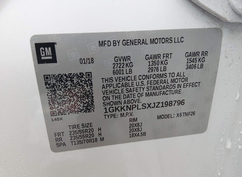 - VIN: 1GKKNPLSXJZ198796
