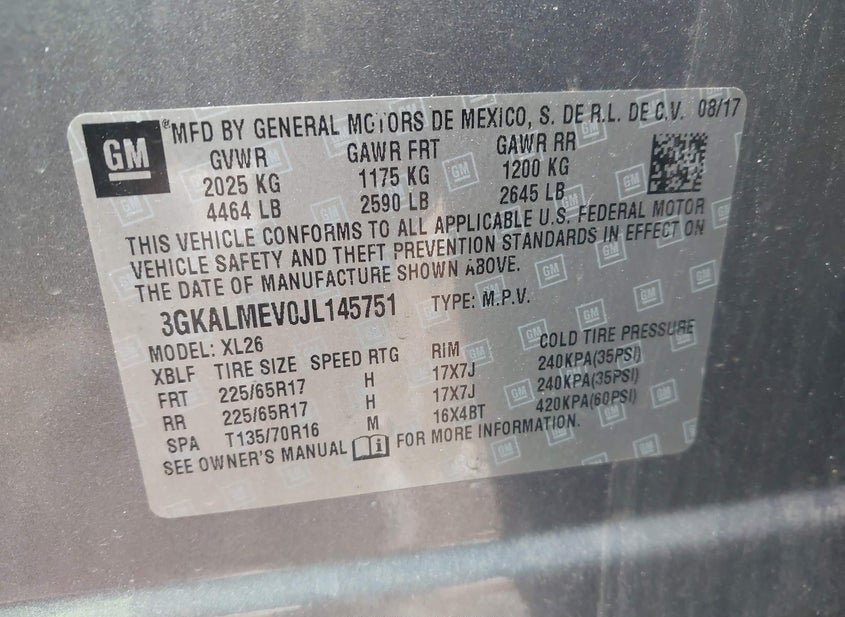 - VIN: 3GKALMEV0JL145751
