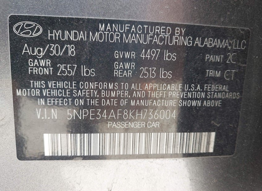 - VIN: 5NPE34AF8KH736004