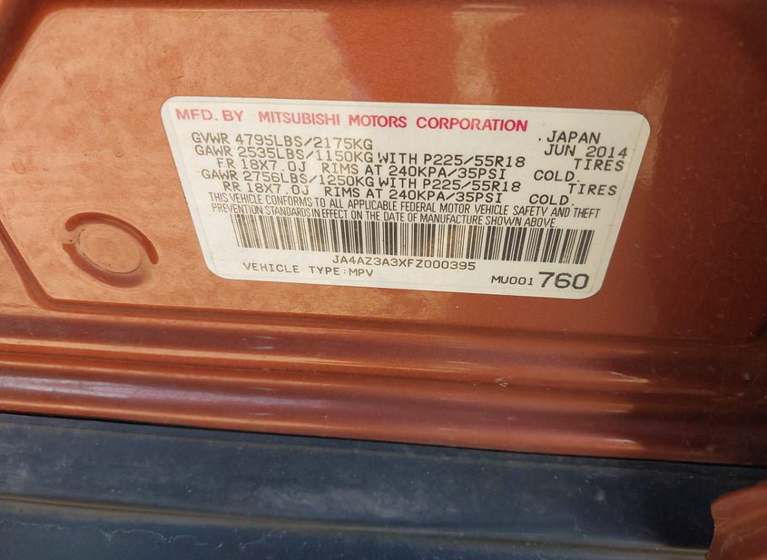 - VIN: JA4AZ3A3XFZ000395
