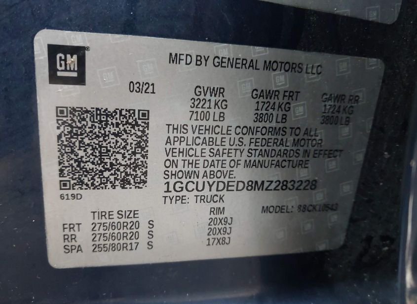 - VIN: 1GCUYDED8MZ283228