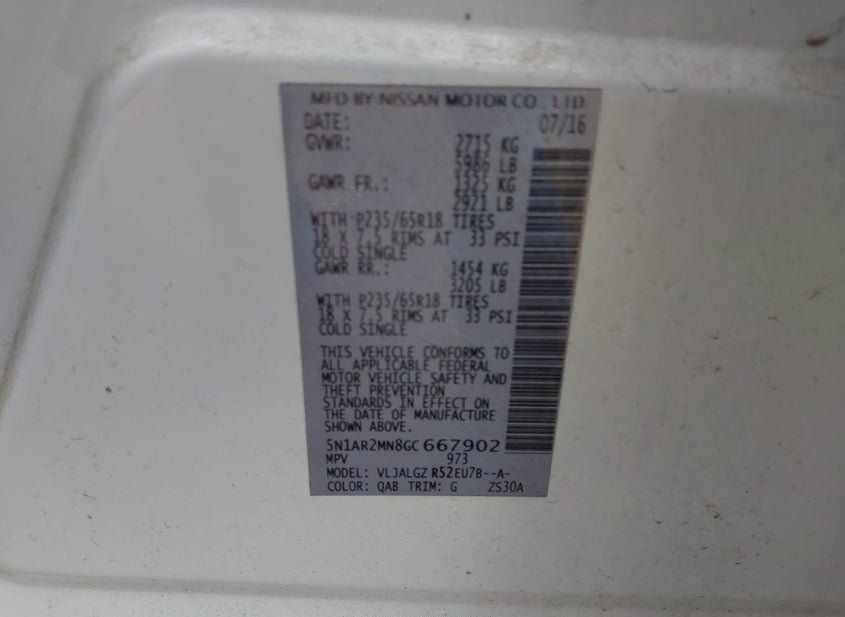 - VIN: 5N1AR2MN8GC667902
