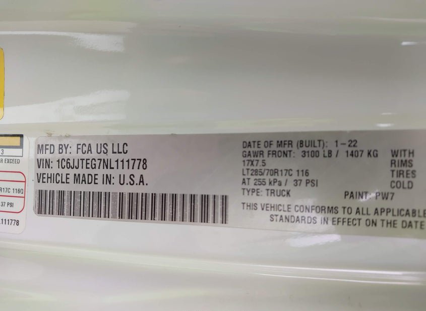 - VIN: 1C6JJTEG7NL111778
