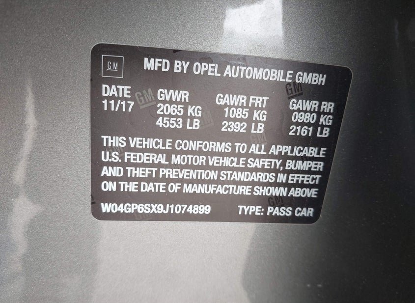 - VIN: W04GP6SX9J1074899