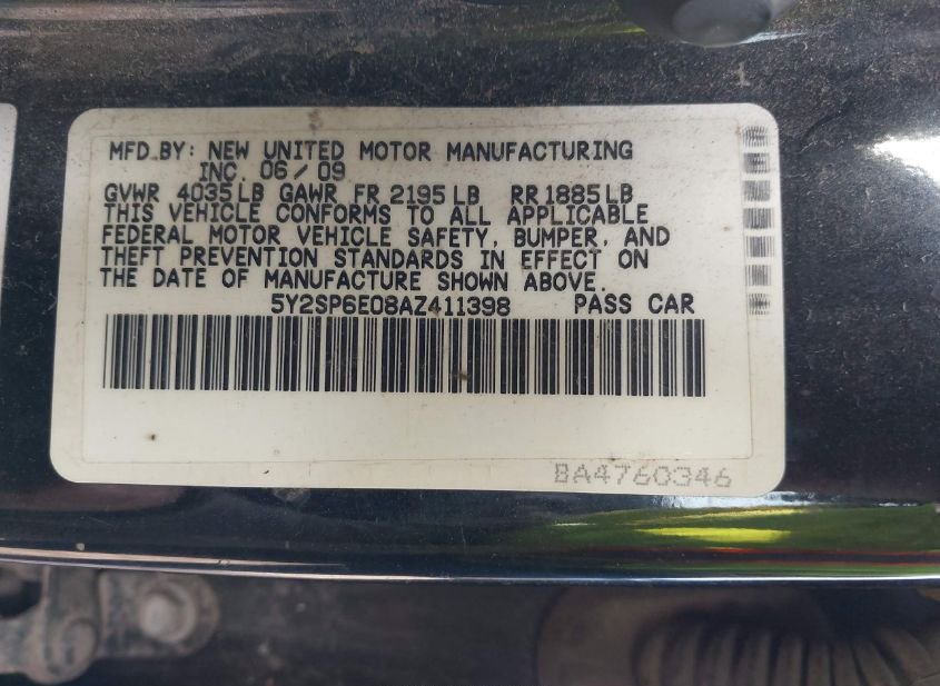 - VIN: 5Y2SP6E08AZ411398