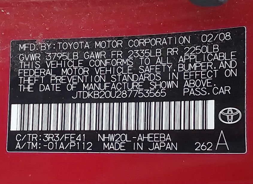 - VIN: JTDKB20U287753565