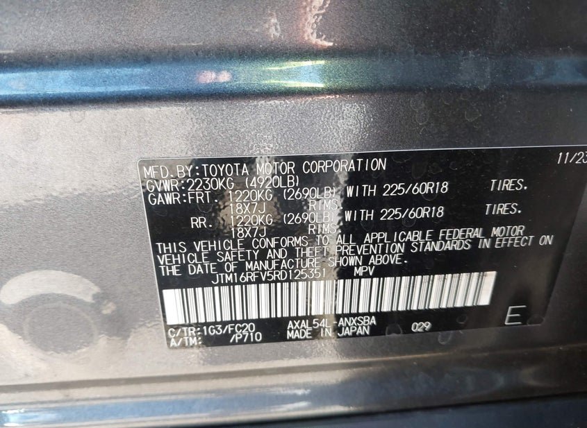 - VIN: JTM16RFV5RD125351