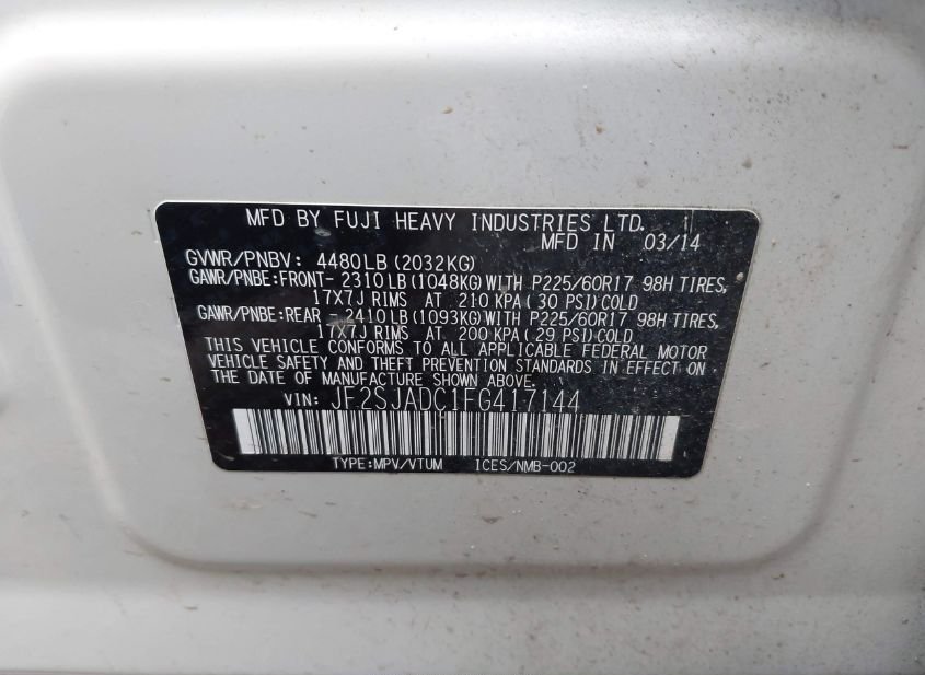 - VIN: JF2SJADC1FG417144
