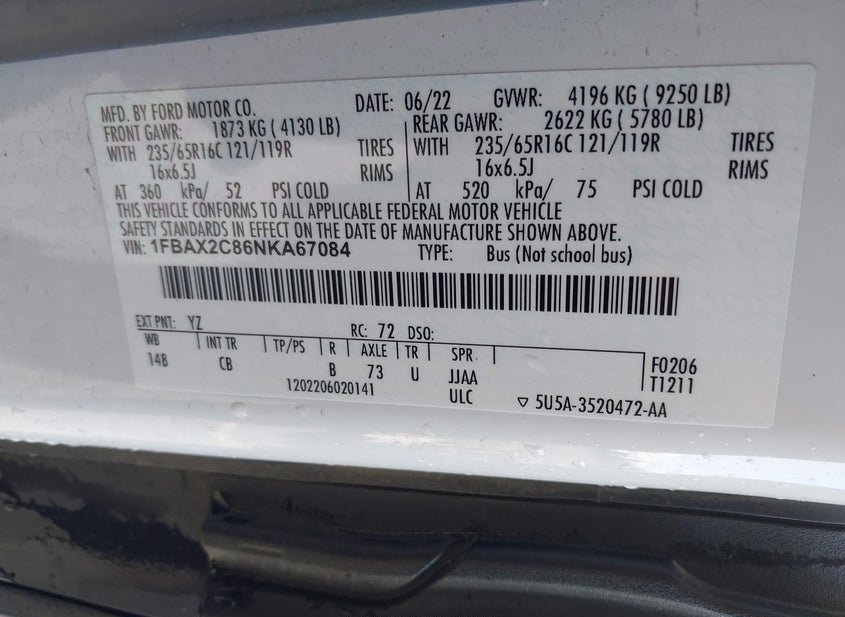 - VIN: 1FBAX2C86NKA67084