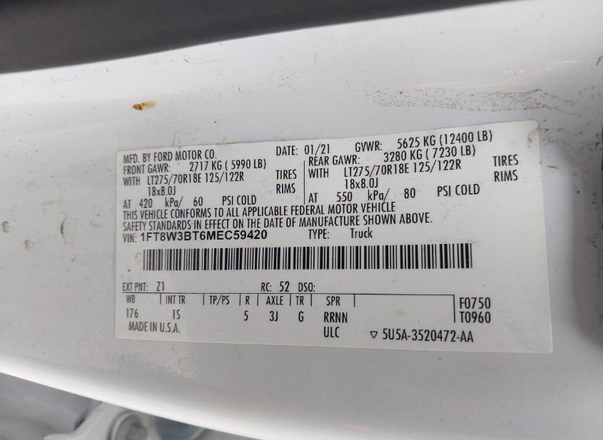 - VIN: 1FT8W3BT6MEC59420