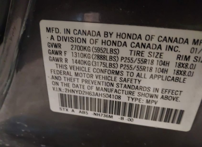 - VIN: 2HNYD2H63AH504108
