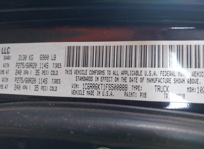 - VIN: 1C6RR6KT1FS500888