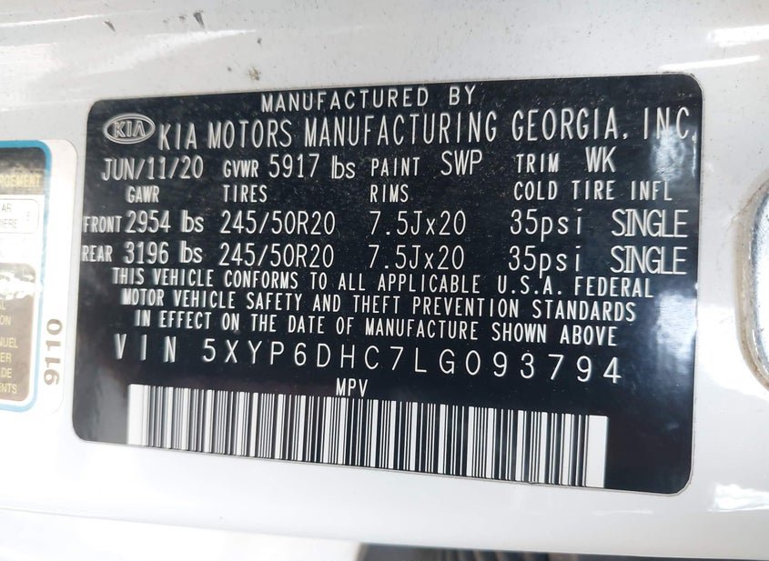 - VIN: 5XYP6DHC7LG093794