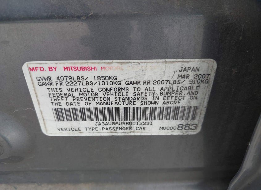 - VIN: JA3AU86U58U012231
