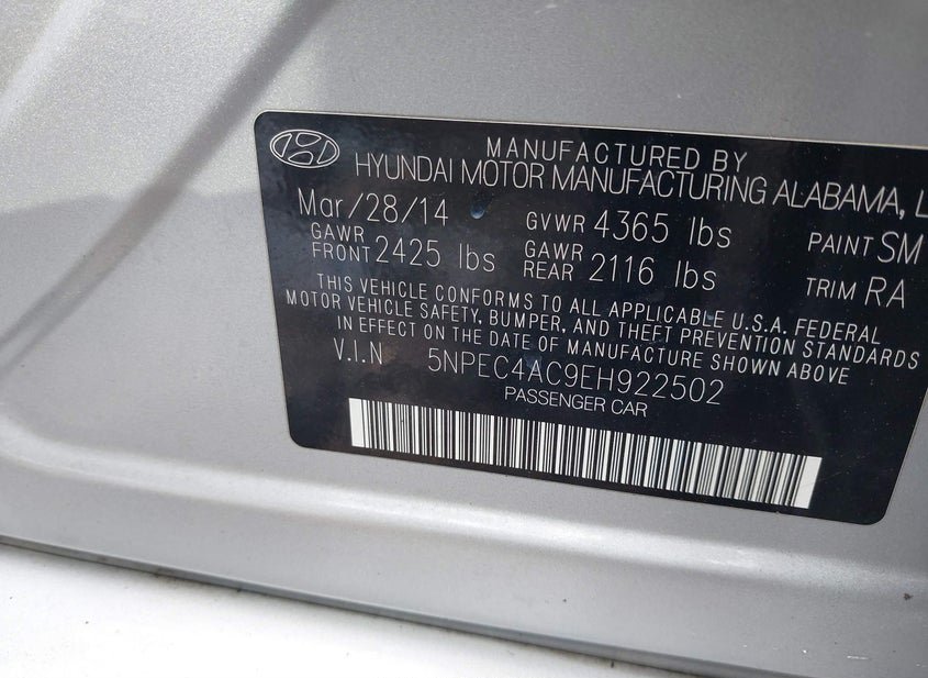 - VIN: 5NPEC4AC9EH922502