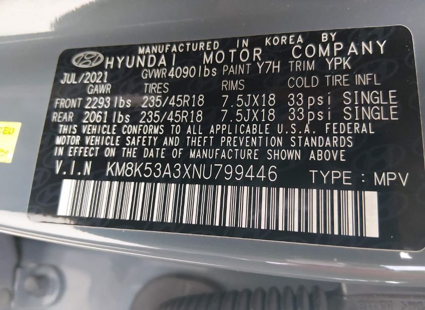 - VIN: KM8K53A3XNU799446
