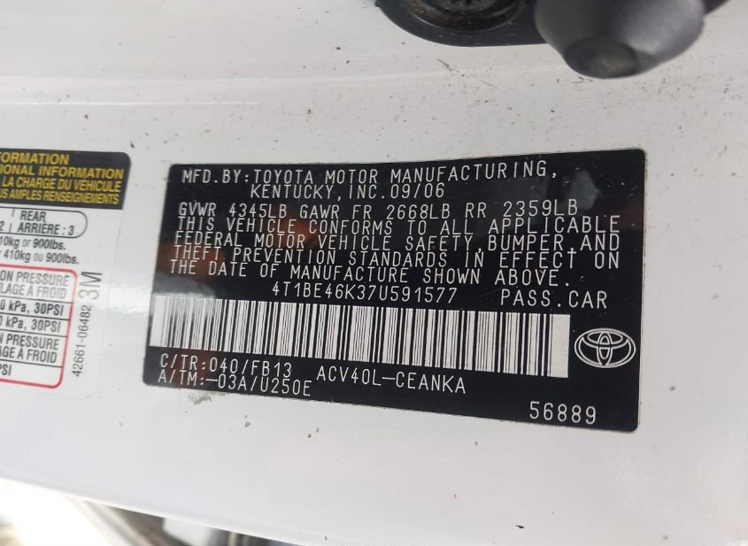 - Название лота: 2007 TOYOTA CAMRY CE