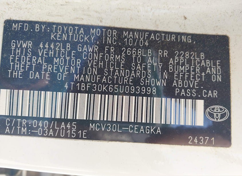 - VIN: 4T1BF30K65U093998