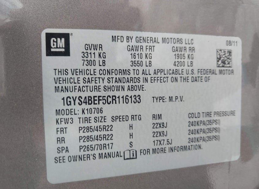 - VIN: 1GYS4BEF5CR116133