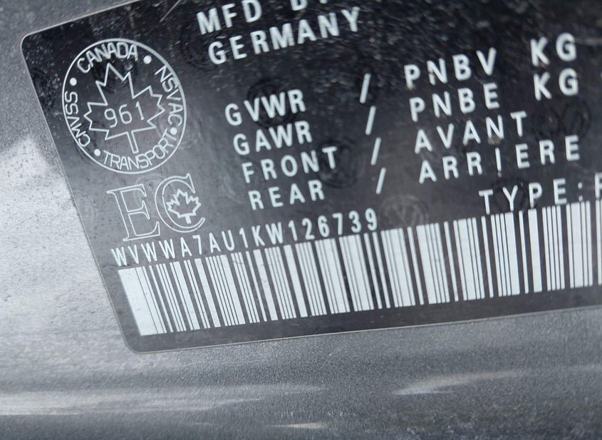 - VIN: WVWWA7AU1KW126739