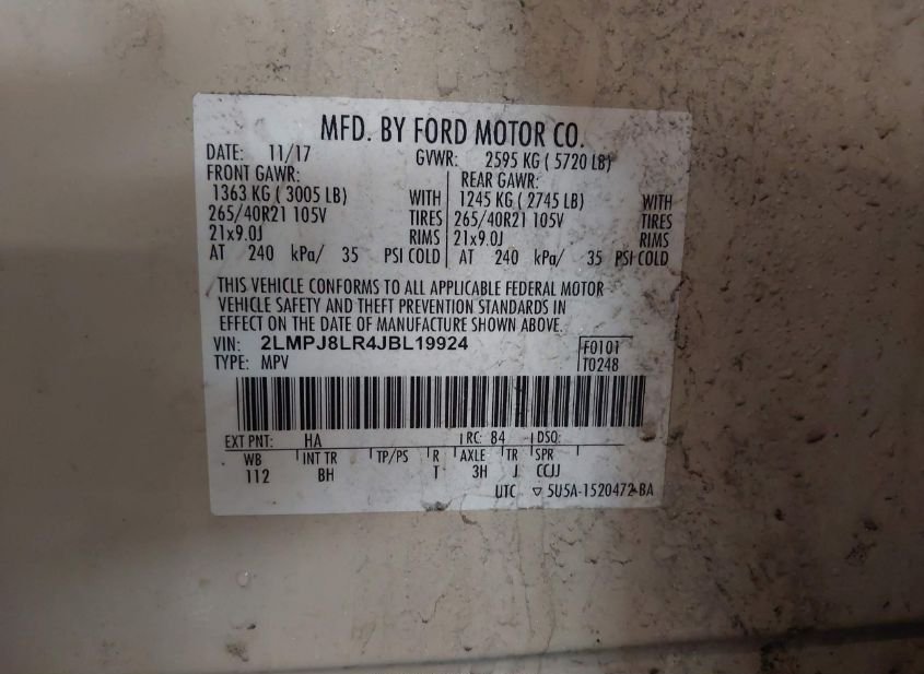 - VIN: 2LMPJ8LR4JBL19924