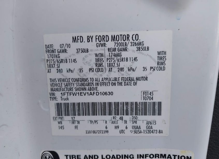 - VIN: 1FTFW1EV1AFD10630