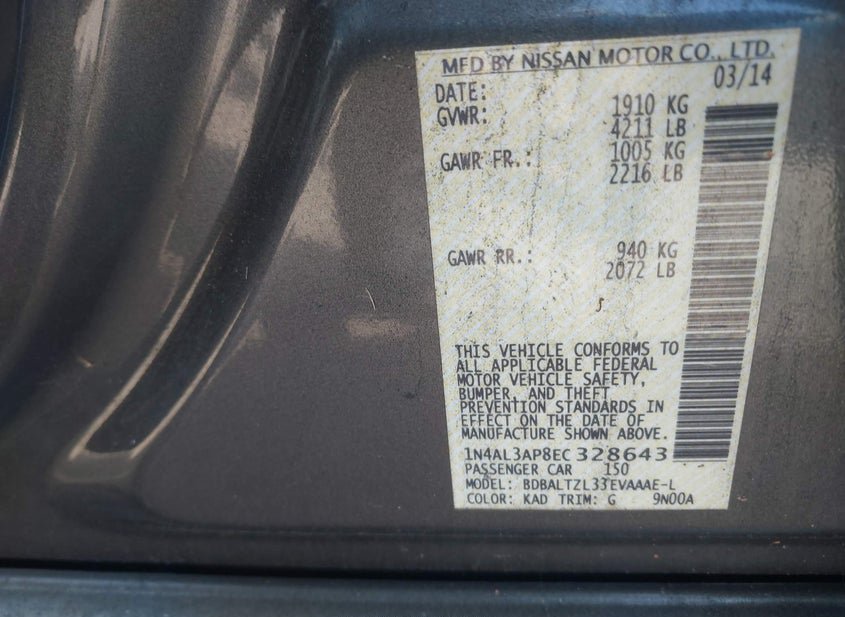 - VIN: 1N4AL3AP8EC328643