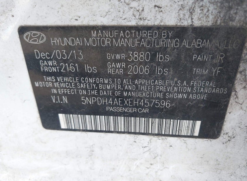 - VIN: 5NPDH4AEXEH457596