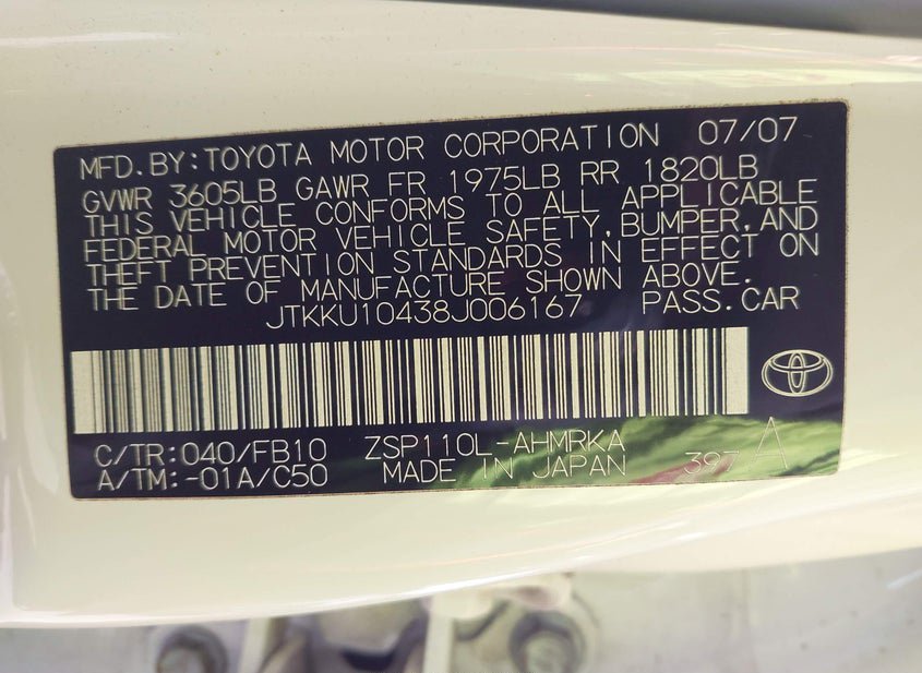 - VIN: JTKKU10438J006167