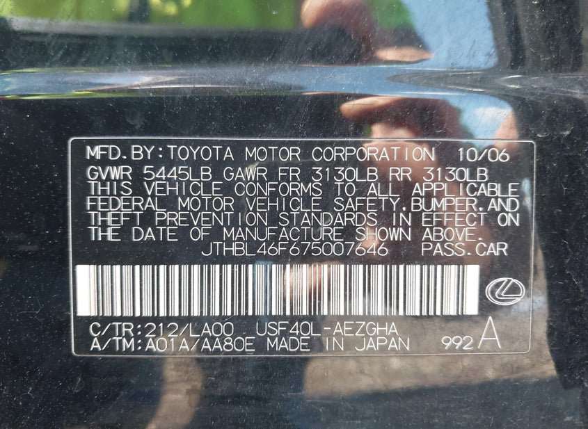- VIN: JTHBL46F675007646