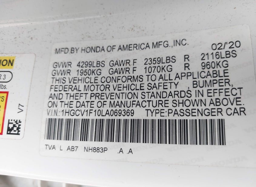 - VIN: 1HGCV1F10LA069369