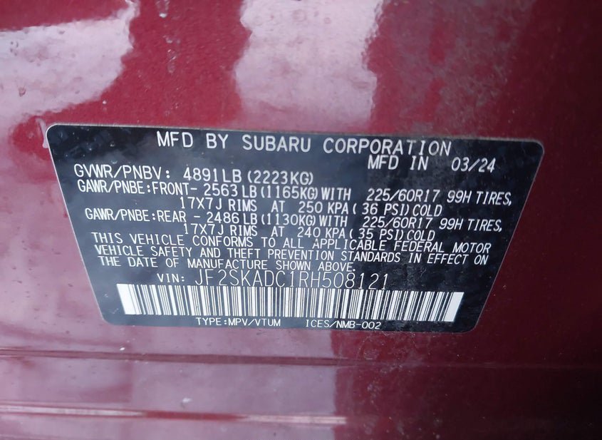 - VIN: JF2SKADC1RH508121