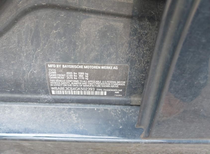 - VIN: WBA8E3C5XGK502393
