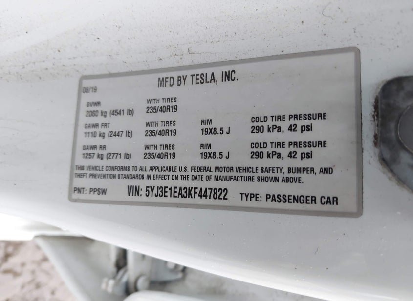 - VIN: 5YJ3E1EA3KF447822