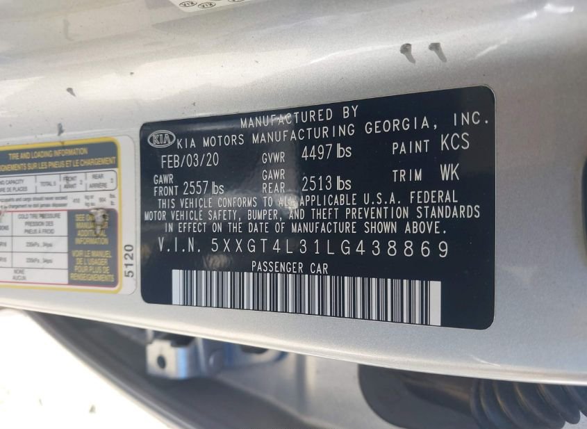 - VIN: 5XXGT4L31LG438869