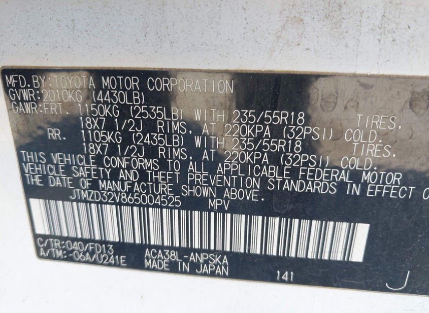 - VIN: JTMZD32V865004525