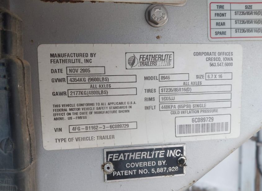 2006 FEATHERLITE 2 HORSE LQ 22' TA