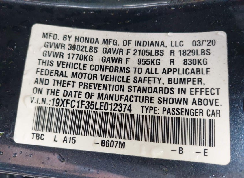 - VIN: 19XFC1F35LE012374