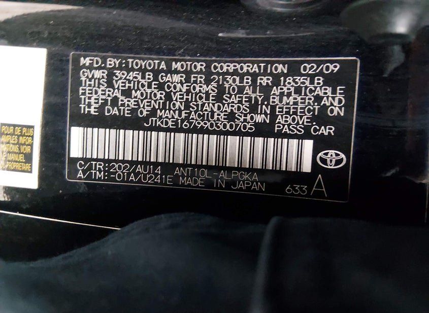 - VIN: JTKDE167990300705