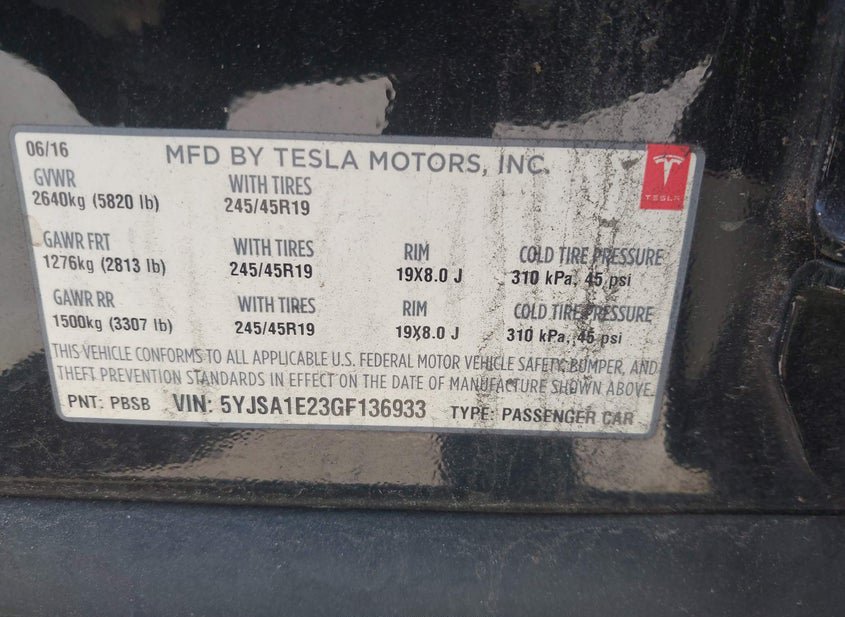 - VIN: 5YJSA1E23GF136933