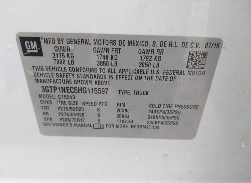 - VIN: 3GTP1NEC5HG115597
