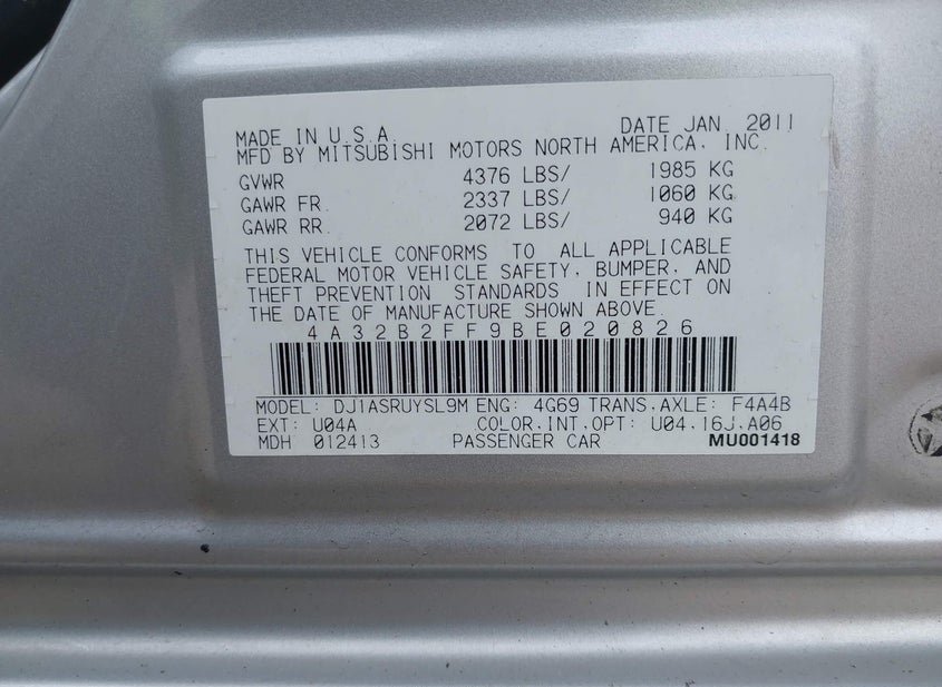 - VIN: 4A32B2FF9BE020826