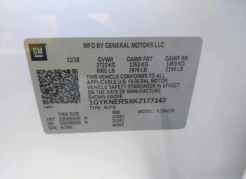 - VIN: 1GYKNERSXKZ177143