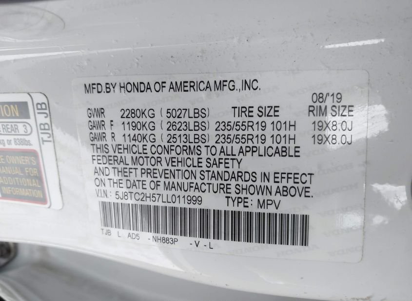 - VIN: 5J8TC2H57LL011999