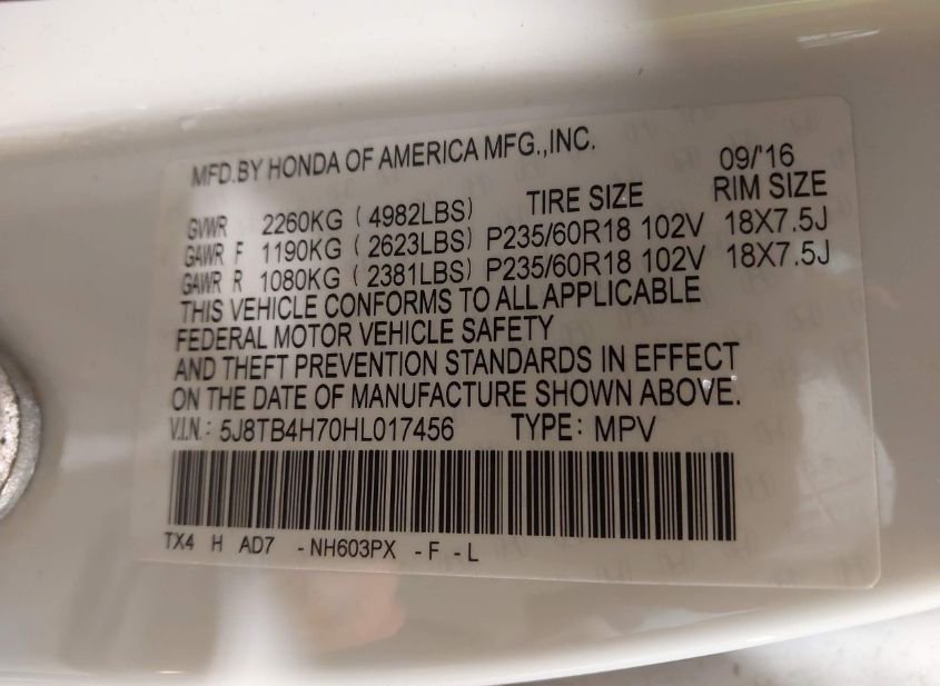 - VIN: 5J8TB4H70HL017456
